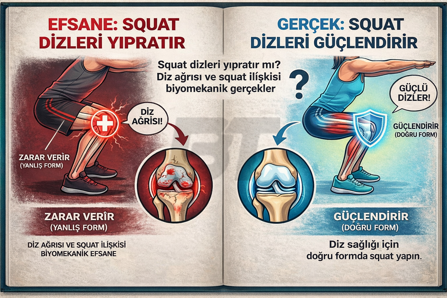 Spor salonlarında, fizyoterapi kliniklerinde ve internet forumlarında yıllardır süregelen bir tartışma vardır: "Squat dizleri yıpratır, mahveder." Birçok kişi, squat yapmaya başladıktan sonra dizlerinde hissettikleri ağrılar nedeniyle bu egzersizi "yasaklı hareketler" listesine alır. Hatta bazı doktorlar ve terapistler bile, diz sorunu yaşayan hastalara squatı tamamen yasaklama eğilimindedir.