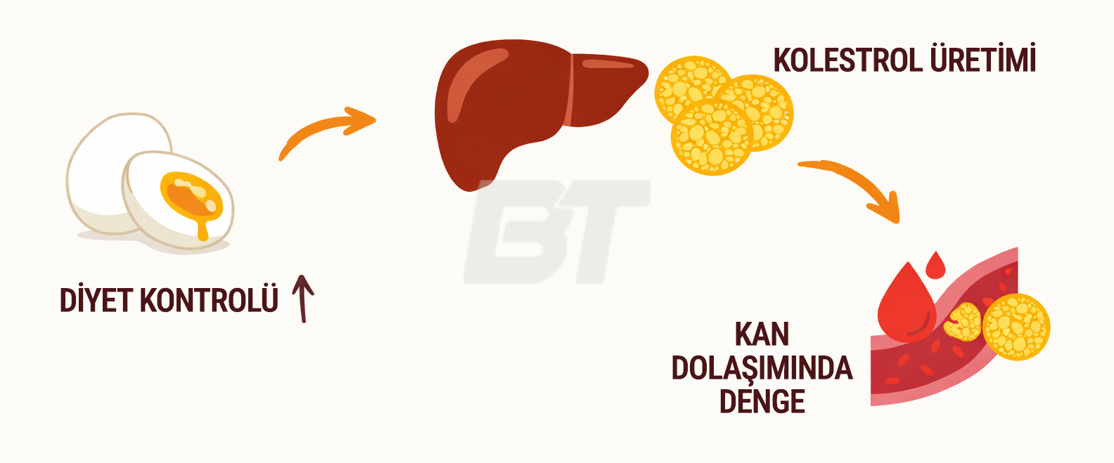 Günümüzde biliyoruz ki, yumurta tüketimi çoğu sağlıklı bireyde kan kolesterolünü anlamlı düzeyde artırmaz. Vücuttaki kolesterolün büyük kısmı karaciğerde üretilir ve diyetle alınan kolesterol arttığında, karaciğer kolesterol üretimini azaltarak dengeyi korur. Bu nedenle, ölçülü miktarda yumurta tüketimi kan kolesterolünü tehlikeli düzeyde yükseltmez.